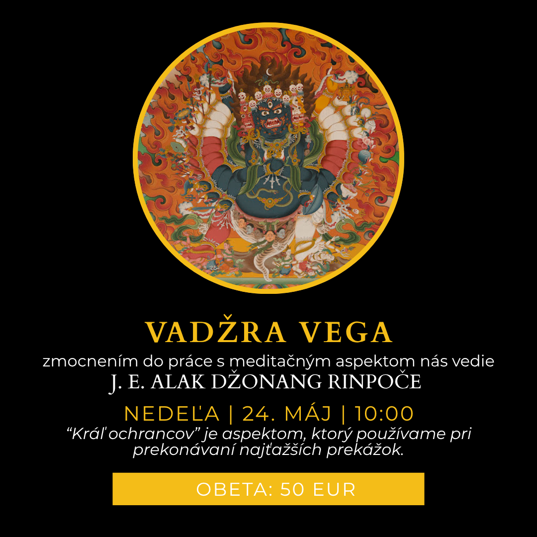 Pozývame vás na vzácnu duchovnú udalosť – zmocnenie do meditačného aspektu Vadžra Vega, ktoré povedie celosvetovo uznávaný majster línie Džonang, J. E. Alak Džonang Rinpoče.